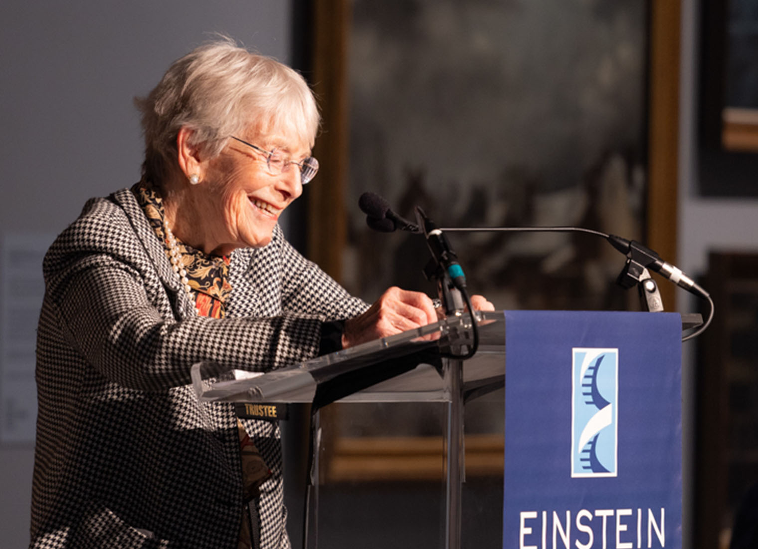 Remarks were delivered by Dr. Schlesinger Hirschfeld; Einstein Board Chair Ruth L. Gottesman, Ed.D.; Yaron Tomer, M.D., Einstein’s Marilyn & Stanley M. Katz Dean; student speaker Jessica Hecht (M.D. student, Class of 2026); and Richard S. Frankenstein, M.D. ’74, president of the Einstein Alumni Association Board of Governors.