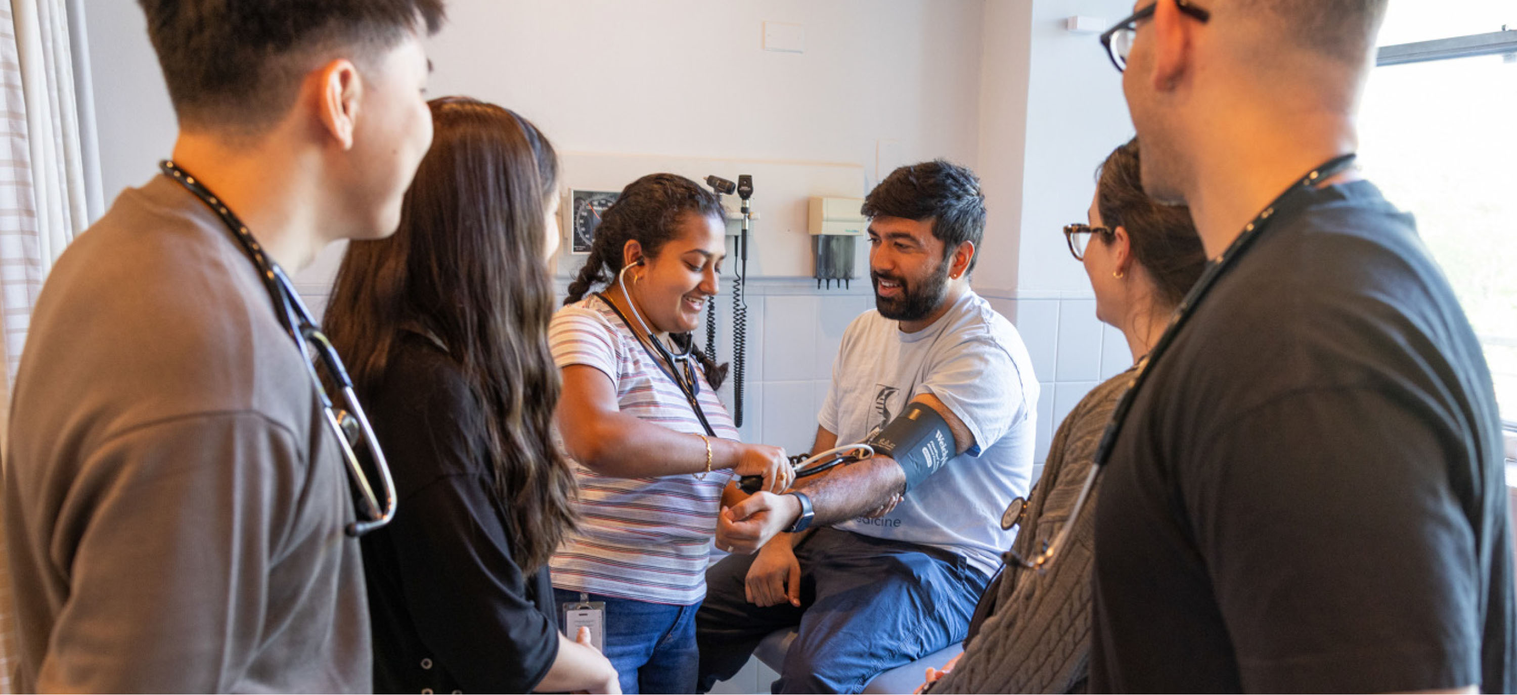 Einstein first-years are assigned to different clinical sites in the fall to practice what they’ve learned in the classroom. When Mr. Crespo was doing an observed interview with a real patient in the hospital, Dr. Oza was the overseeing preceptor. “I remember we were waiting for the bus to return to Einstein, and Dr. Oza gave me helpful feedback,” Mr. Crespo recalled. “She suggested asking patients open-ended questions rather than yes-or-no questions so that patients could share more information with me. I carried that advice with me when I did other patient interviews, and it helped.”